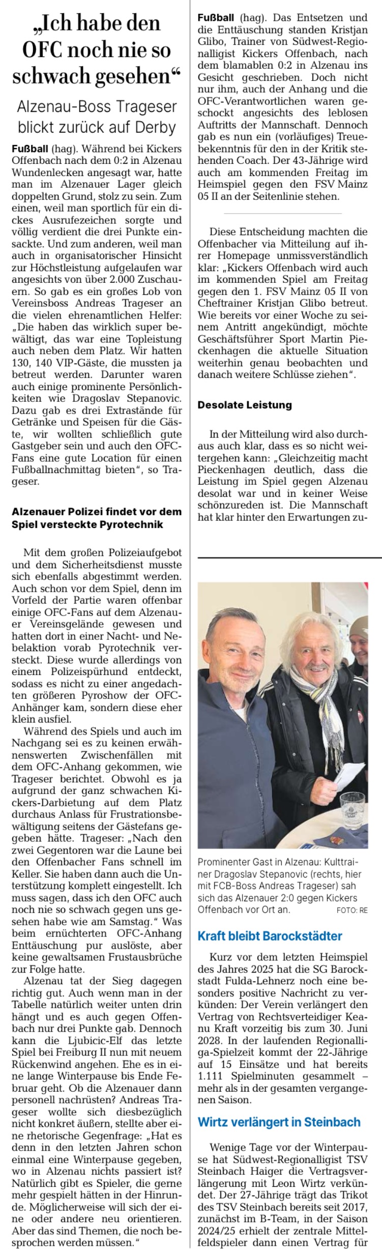 Der Pressespiegel zu unserem 2:0 Heimsieg über Kickers Offenbach