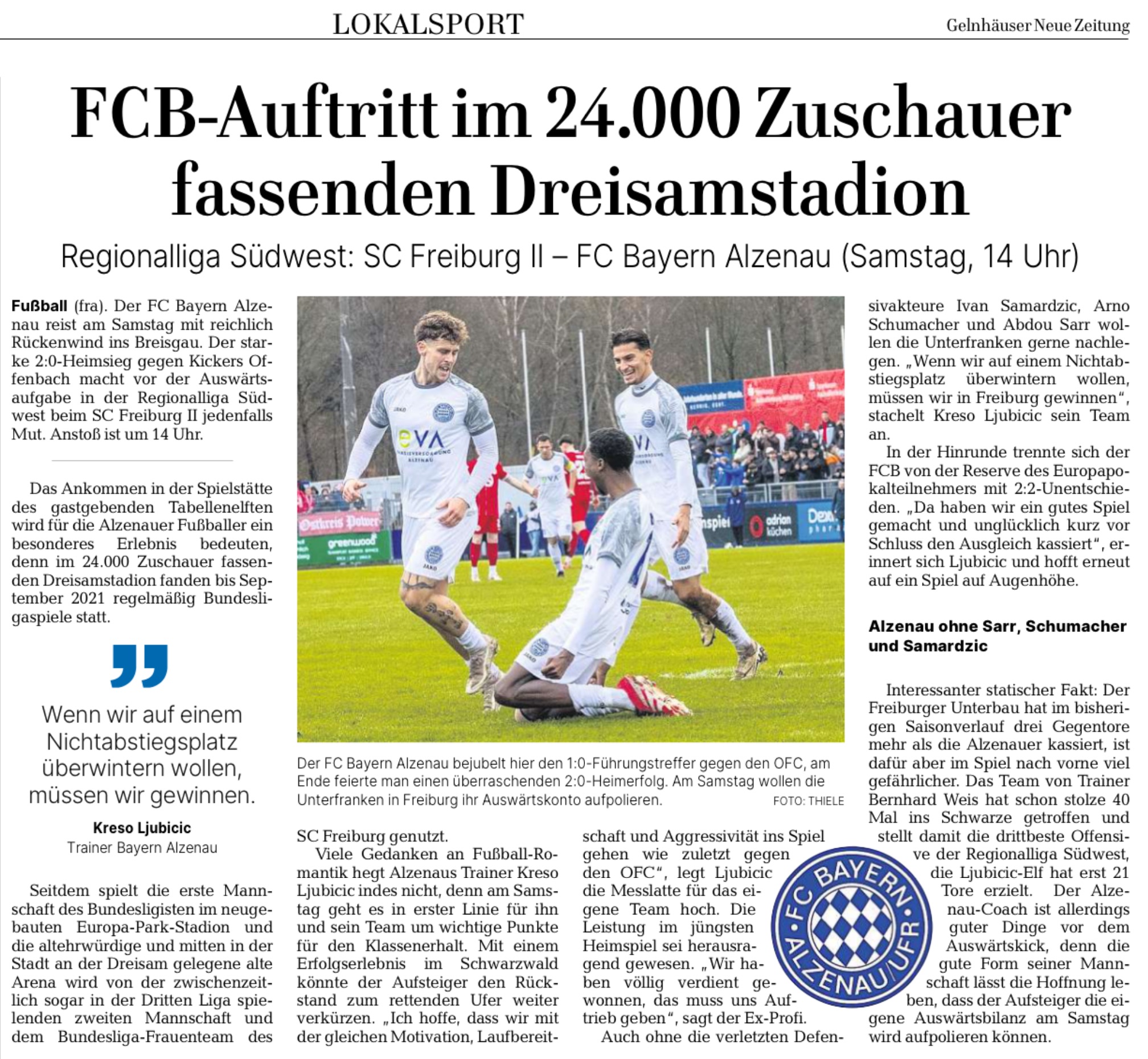 Vorbericht zum Spiel der Regionalliga Südwest: SC Freiburg II - FC Bayern Alzenau