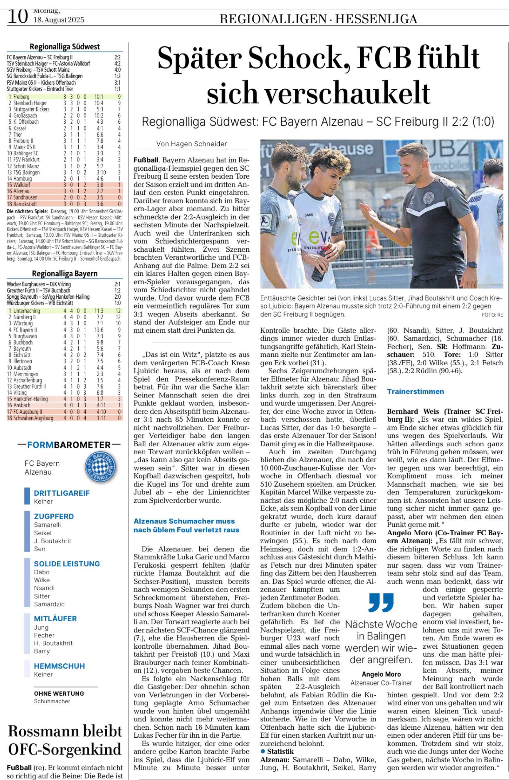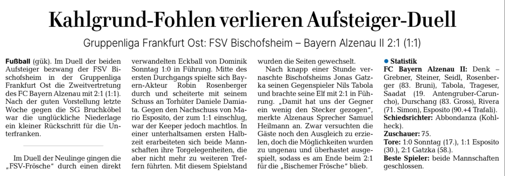 Main-Echo und GNZ zu unserem Schock in der Nachspielzeit gegen Freiburg II, zum Spieltag unserer U23 gegen Bischofsheim und ein Interview mit unserem ehemaligen Spieler David Neis