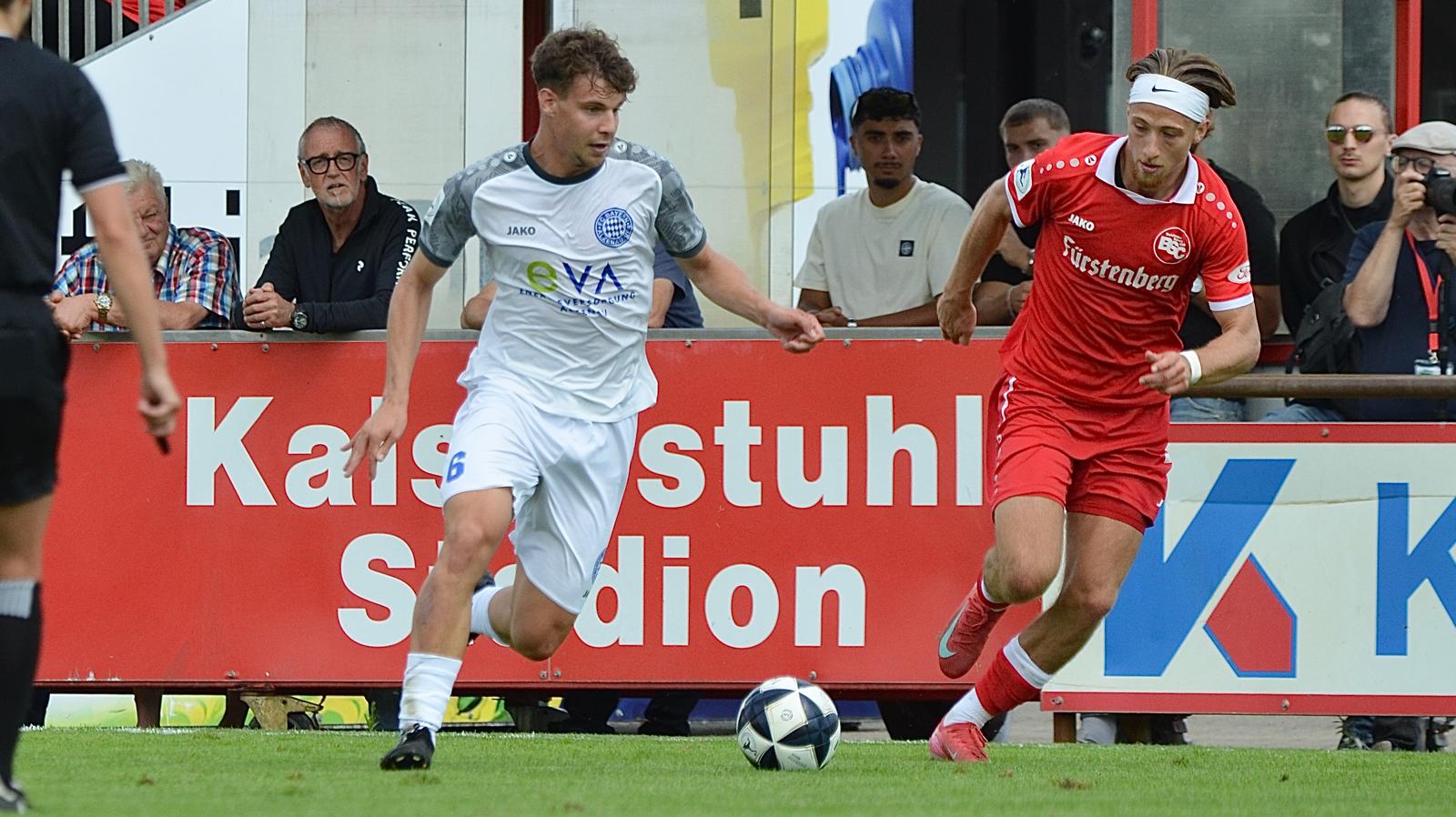 26' vielversprechender Angriff über Fecher und Jihad Boutakhrit, die sich am Ende aber nicht gegen die Bahlinger Abwehr durchsetzen können