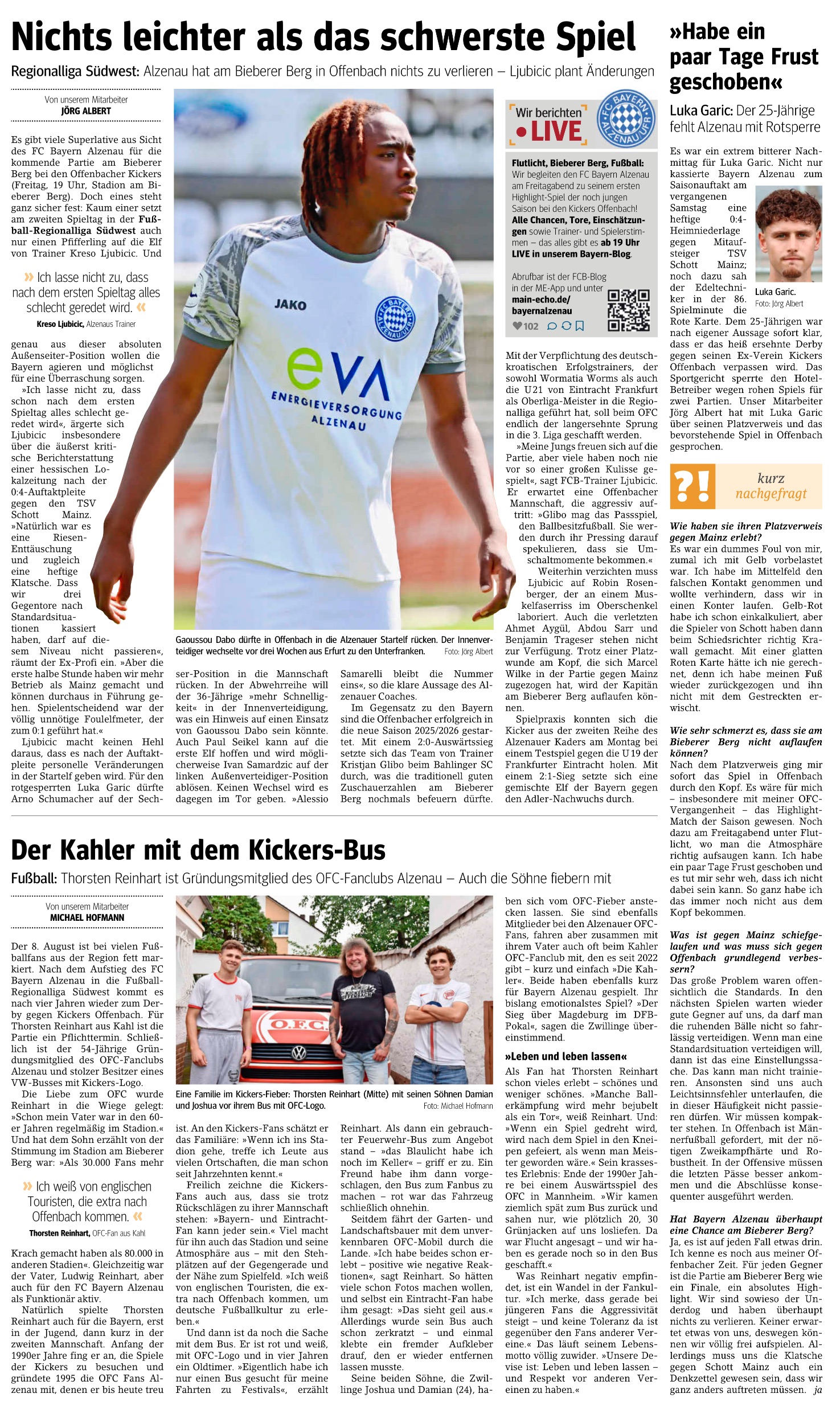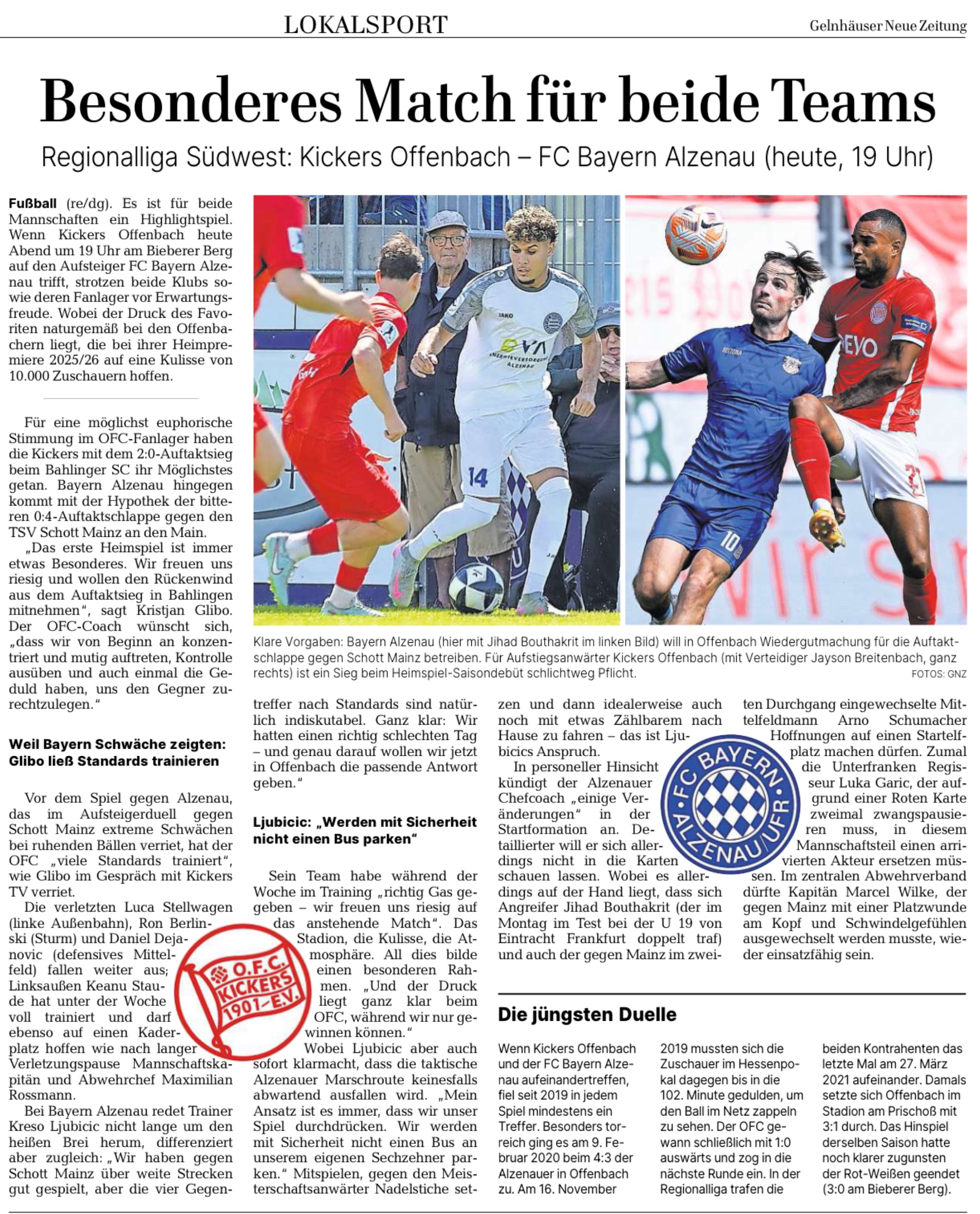 Main-Echo, GNZ und die BILD Frankfurt vor dem Auswärtsspiel in Offenbach.