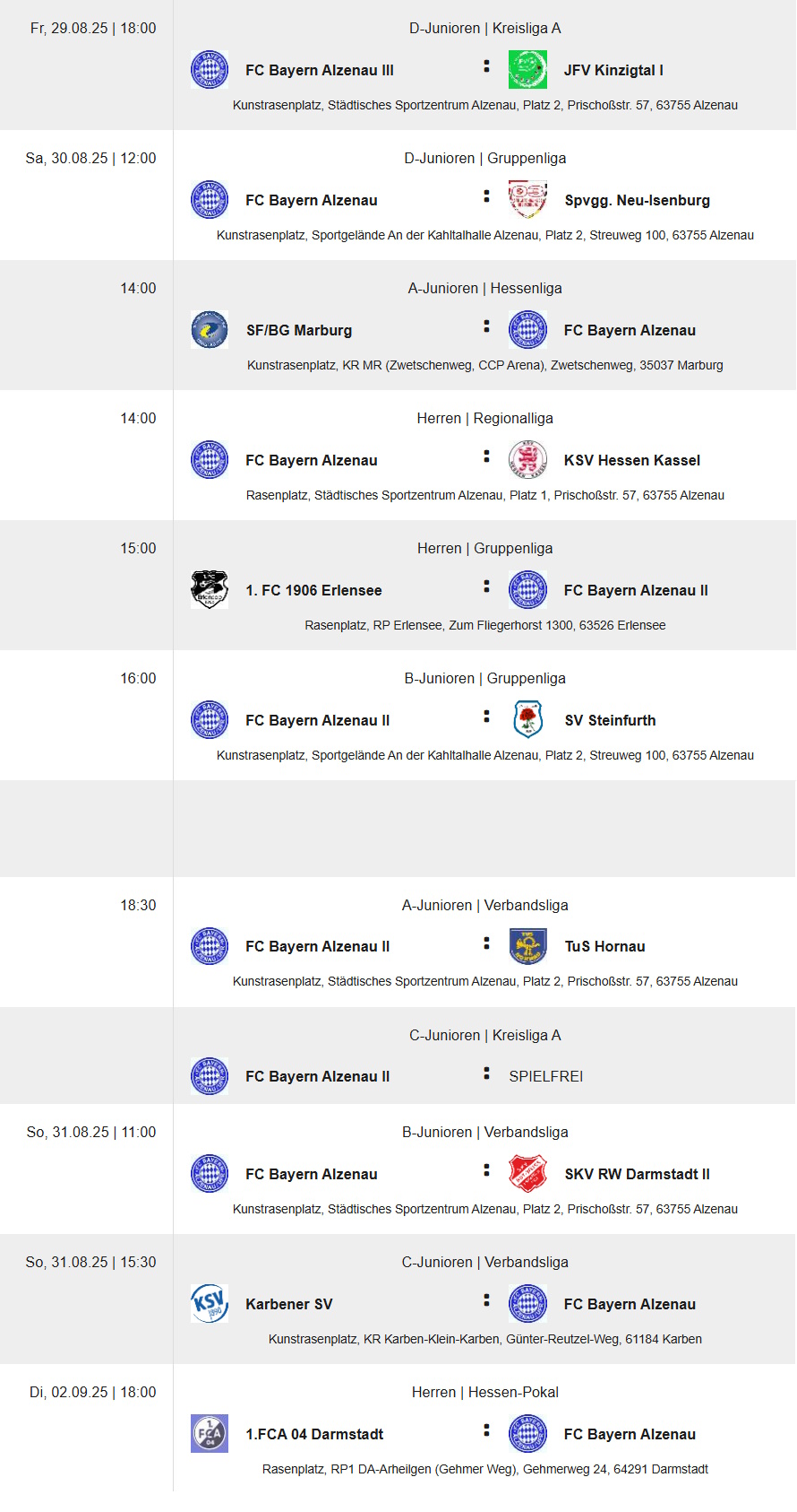 Während die Saison unserer Herrenmannschaften schon einige Wochen lang läuft, sind die Juniorenteams auf dem Großfeld erst seit letztem Wochenende wieder aktiv. Wie gewohnt informieren wir Euch über die Spieltermine von Mittwoch bis Dienstag.