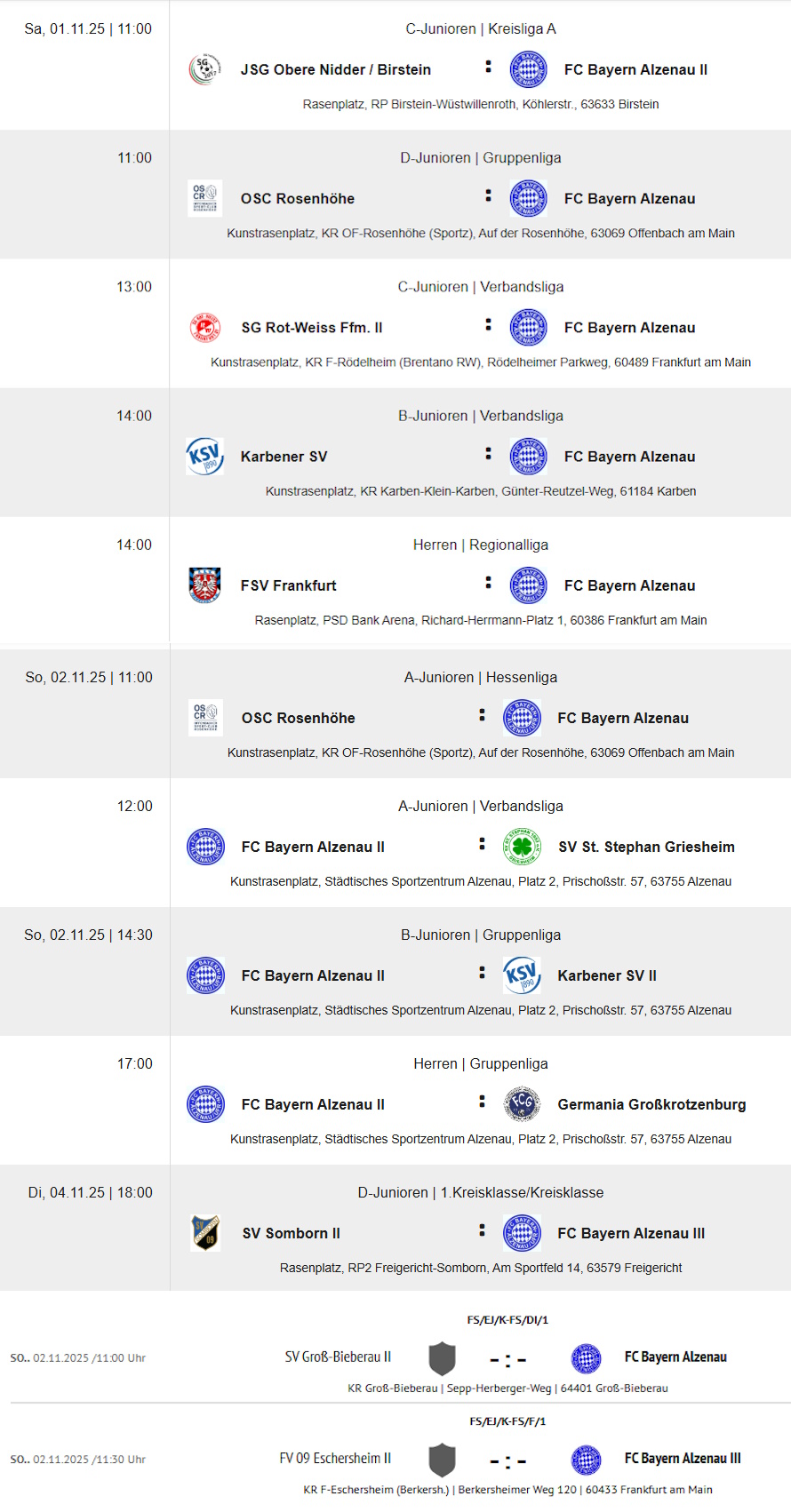 Auch wenn der Monat November mit einem Feiertag in Bayern beginnt, so sind unsere Teams doch größtenteils an Allerheiligen im Einsatz! Hier folgt die Übersicht der Spielansetzungen bis zum kommenden Dienstag!