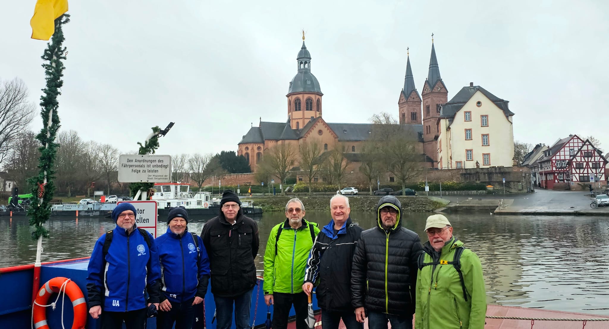 Mit dem City-Bus ging es nach Kahl zur Haltestelle Rathaus. Von hier aus marschierten wir in Richtung Seligenstadt zur Fähre. An der Fähre angekommen, setzten wir dann nach Seligenstadt über.