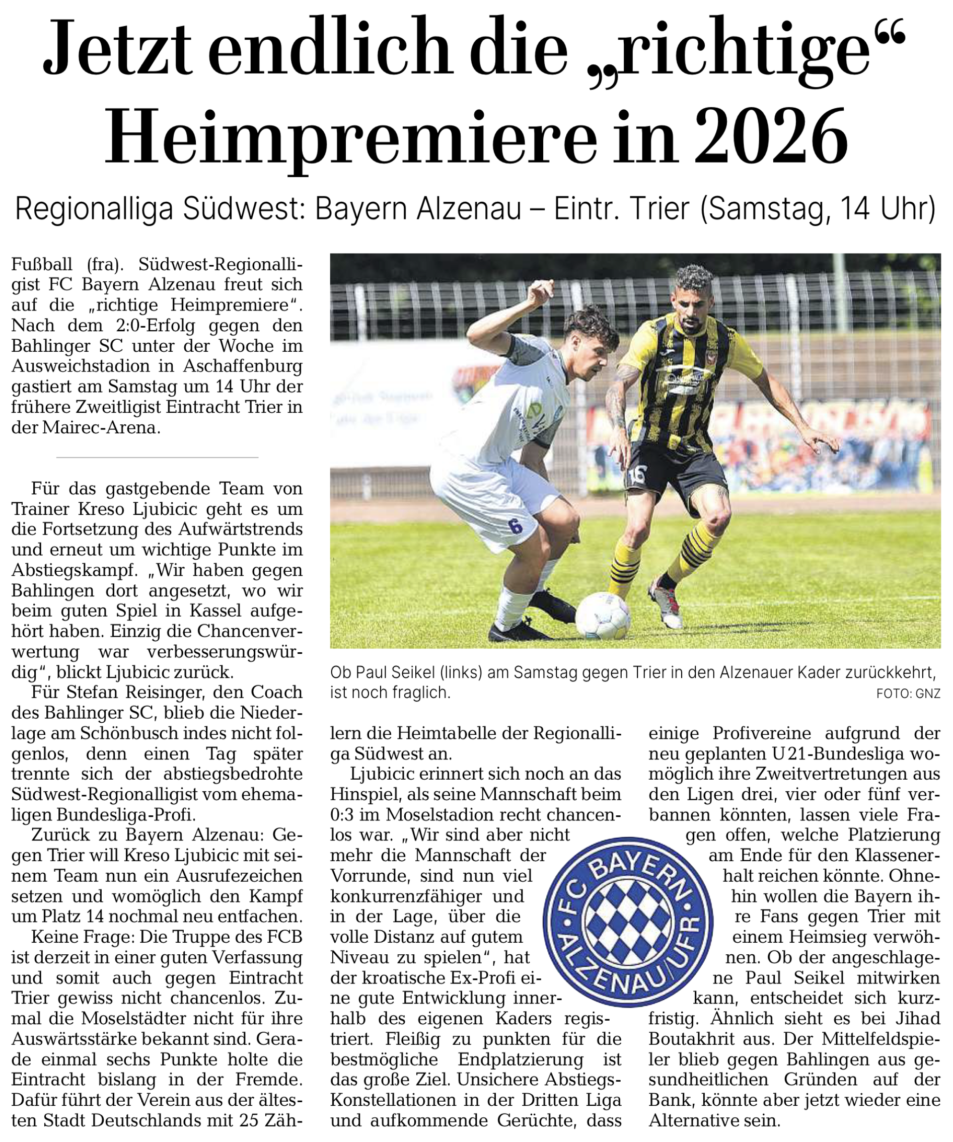 Helft alle mit, dass wir in der MAIREC-Arena bald eine Flutlichtanlage stehen haben.GNZ vom 09.03.2026Main-Echo vom 09.03.2026GNZ vom 09.03.2026GNZ vom 06.03.2026Main-Echo vom 06.03.2026