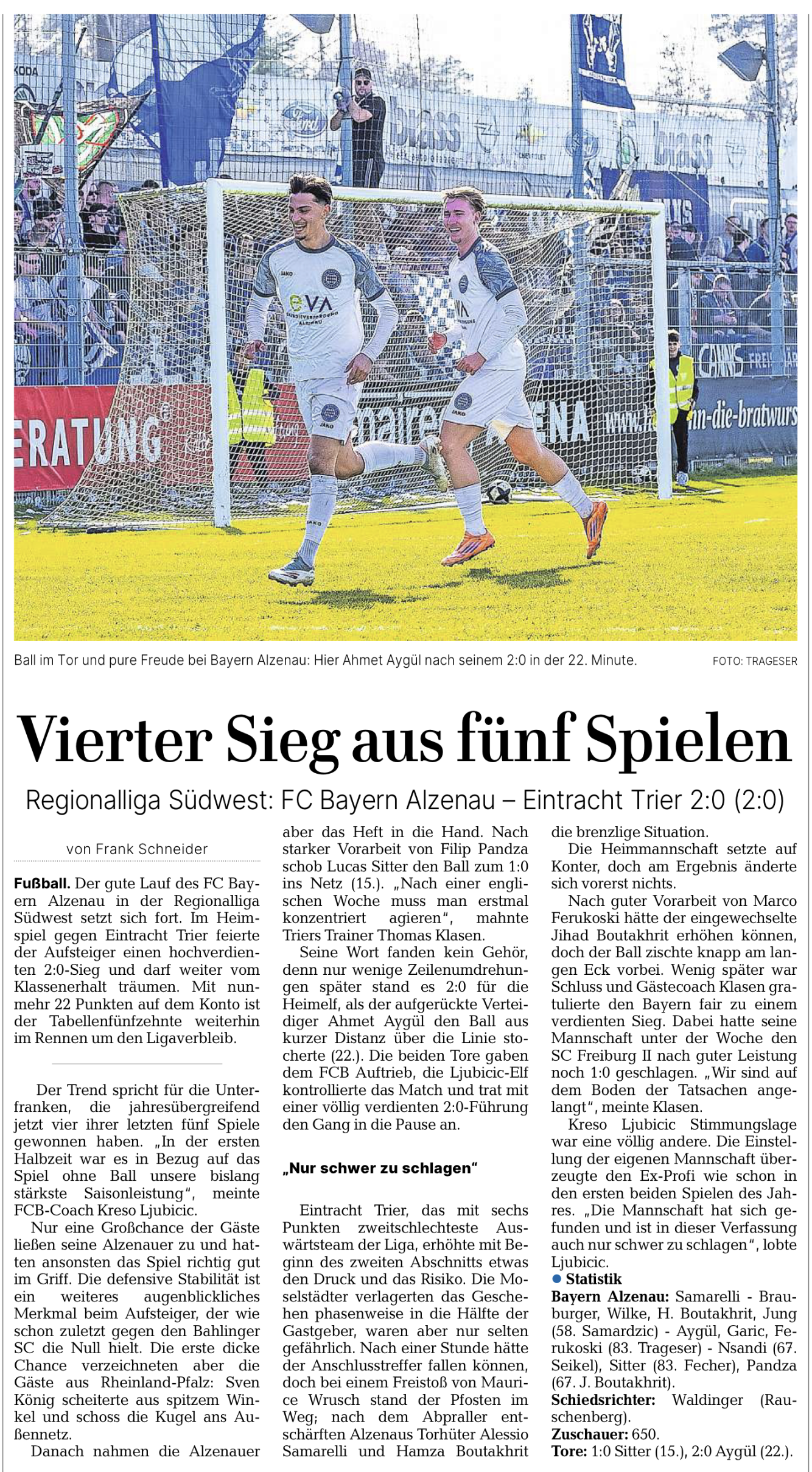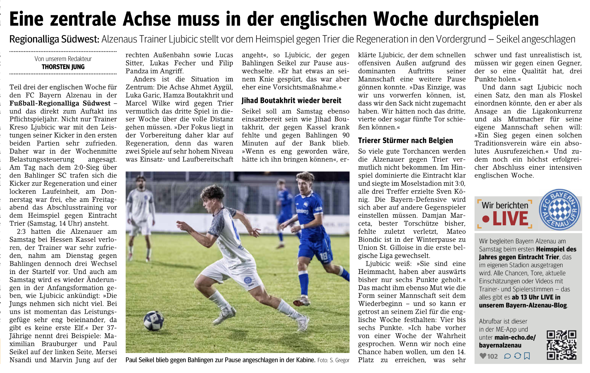 Main-Echo und GNZ zu den Siegen unseres Regionalligateams zum Heimsieg gegen Trier und des 5:1 Auswärtserfolges unseres U23 Team in Bad Orb.