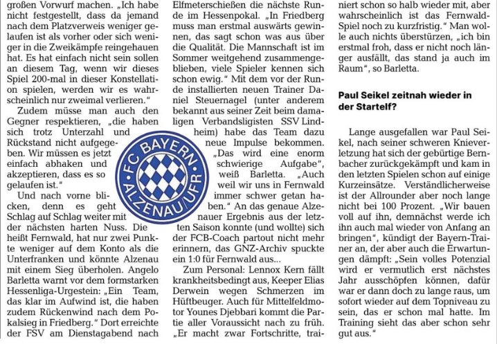 Der Pressespiegel zu unserer Niederlage gegen Walldorf und vor dem Spiel gegen Fernwald