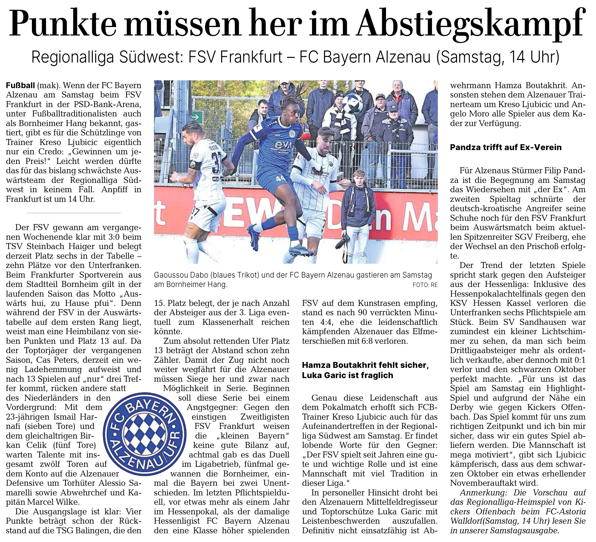 Vorbericht zum Spiel der Regionalliga Südwest: FSV Frankfurt - FC Bayern Alzenau