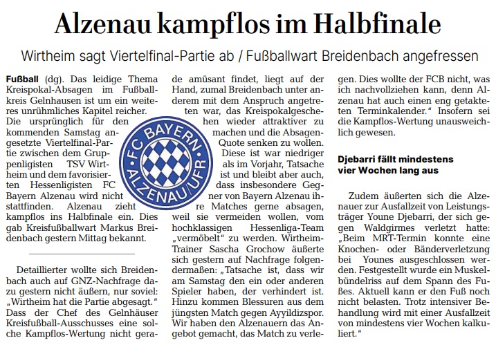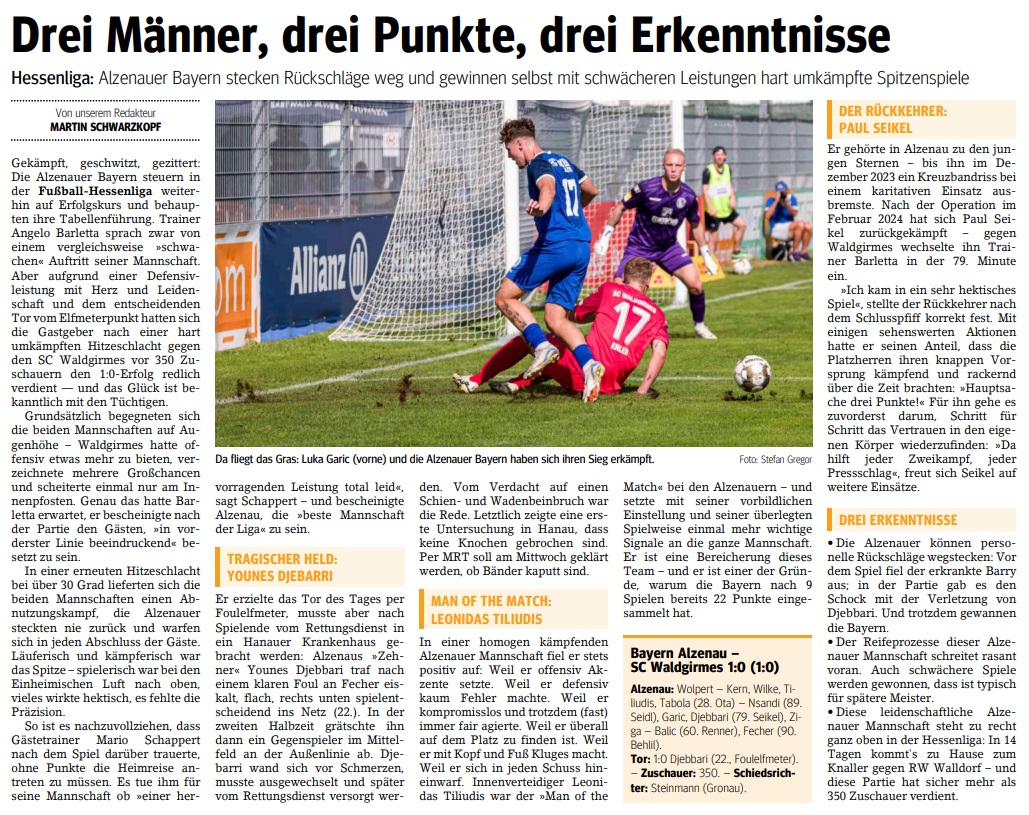 Die einheimische Presse zum Sieg gegen Waldgirmes und vor den beiden Pokalspielen