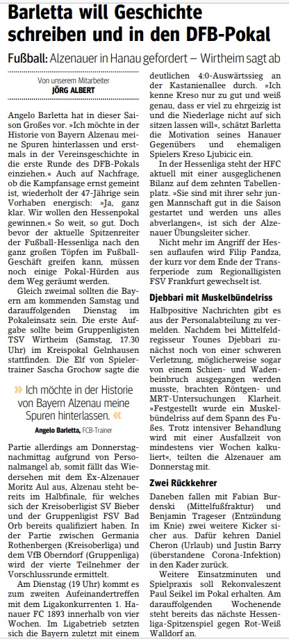 Main-Echo und GNZ über das letzte Heimspiel gegen Waldgirmes und vor den beiden Pokalspielen
