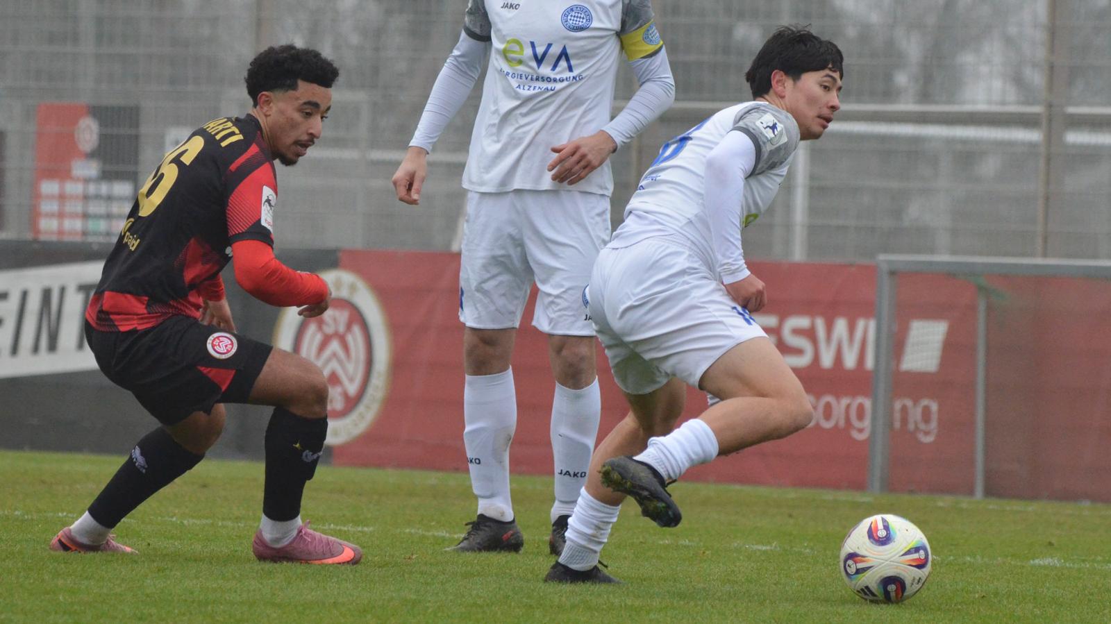 13´ Pressschlag im Wehener Strafraum, der Ball von Brauburger geht aber in die Arme des Torwarts. Auf der anderen Seite führt ein Missverständnis zwischen Jung und Samarelli fast zum Gegentor