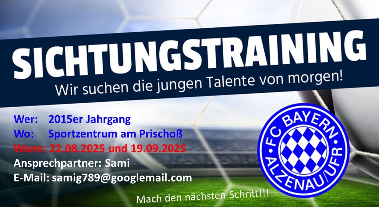 Der FC Bayern Alzenau lädt zu zwei Sichtungstrainings für den Jahrgang 2015 ein