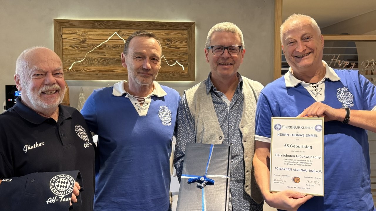 Mit Albin Emge feierte ein echtes Alzenauer Urgestein seinen 80. Geburtstag. Albin der mit 16 Jahren dem FC Bayern Alzenau als Vereinsmitglied beitrat, probierte es als aktiver Jugendspieler und als Linienrichter der 1. Mannschaft. Seine Berufung im Verein fand er allerdings als Platzkassier. 30 Jahre lang, von 1966 bis 1996, versah er praktisch bei allen Heimspielen des FC Bayern Alzenau seinen Dienst am Kassenhäuschen. Im Team mit so Lokalgrößen wie Hansi Pfaff, Ludwig Stroh und Ludwig Reinhart war er für die Zuschauer am alten Rothen Strauch eines der Gesichter des Vereins. Wer zum FC Bayern Alzenau wollte, musste an Albin Emge vorbei.