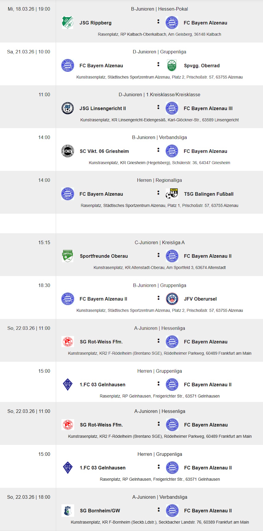 Mitte März stehen folgende Partien mit Alzenauer Beteiligung auf dem Plan. Der Höhepunkt ist das Heimspiel unserer Ersten Mannschaft am Samstag in der Regionalliga Südwest gegen die TSG Balingen.
