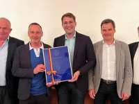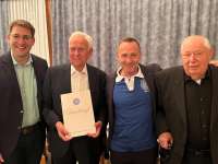 Bürgermeister Stephan Noll gratulierte dem FC Bayern Alzenau nachträglich zum 100 Geburtstag und trat gleichzeitig dem Verein als Mitglied bei.