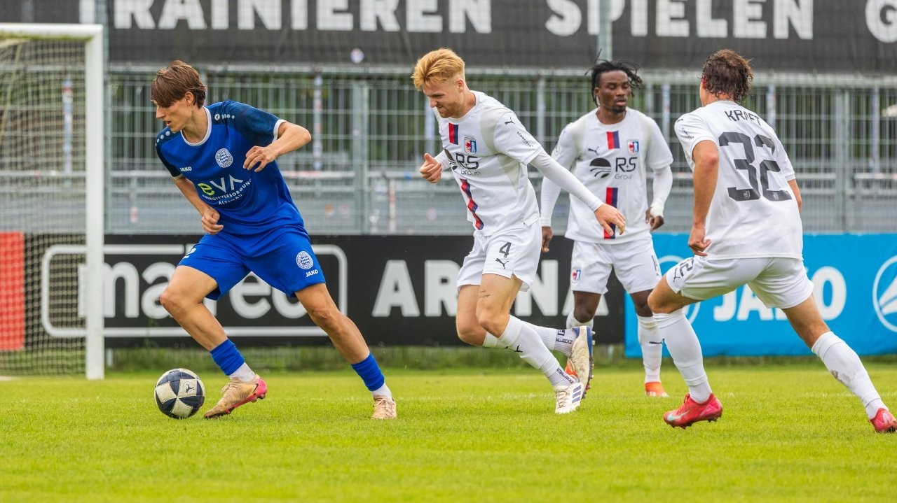 Am Ende der englischen Woche stand eine 1:4 Heimniederlage gegen die SG Barockstadt. Dabei fing alles sehr ordentlich an. Früh im Spiel ging man durch Filip Pandza in Führung. Dann folgten bis zur Halbzeit zwei unerklärliche Aussetzer unserer Abwehr. Wiederum Filip Pandza hätte noch vor dem Pausenpfiff das Ergebnis wieder auf Gleichstand stellen können, als er mit einer Direktabnahme am Torhüter scheiterte. In der zweiten Halbzeit folgte ein Sturmlauf, der dann durch den dritten Fuldaer Treffer jäh gestoppt wurde. Dann versuchte unser Team zwar nochmal den Anschluss zu schaffen, doch anstatt eines eigenen Treffers, fing man sich sogar noch das vierte Gegentor. Das Spiel hatte viele Phasen, wo es in alle Richtungen hätte kippen können, doch am Ende stehen wir mit leeren Händen da. Trotzdem machen unsere spielerischen Auftritte Mut und die Ergebnisse werden sich hoffentlich bald auch einstellen.